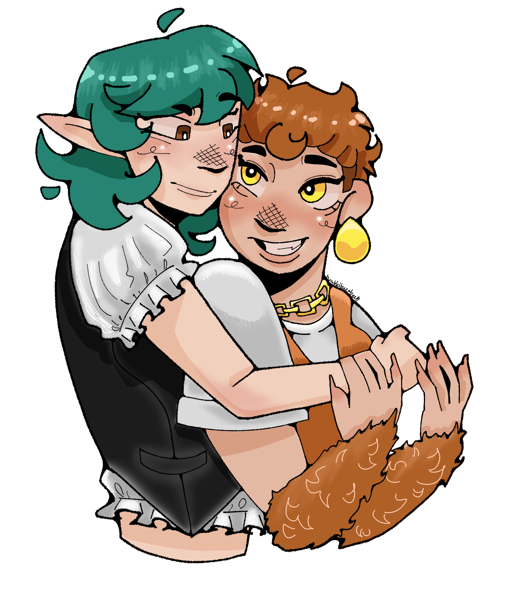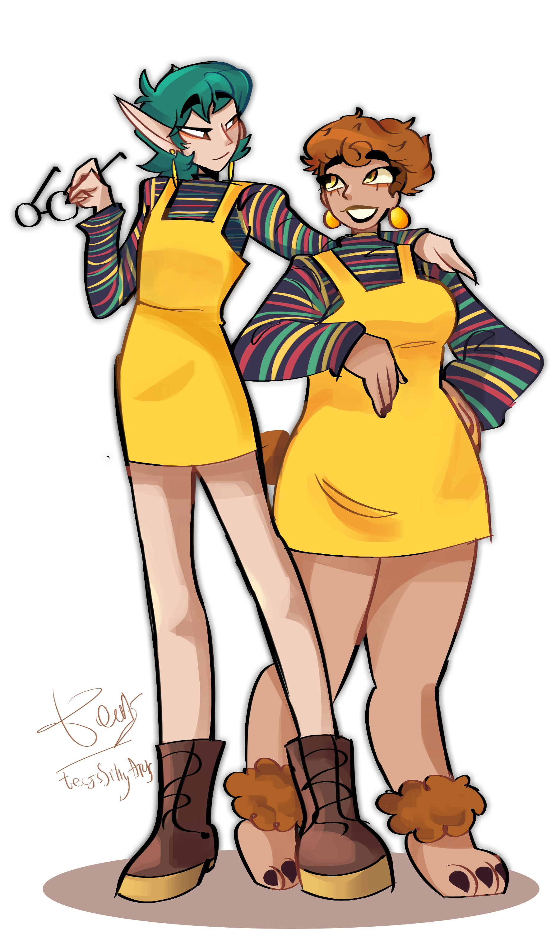 ✿ This is such a cute artstyle i had to commmisson them something with both of them in a fun matching outfit! Artist is tecjssillyarts/DeviantArt.✿